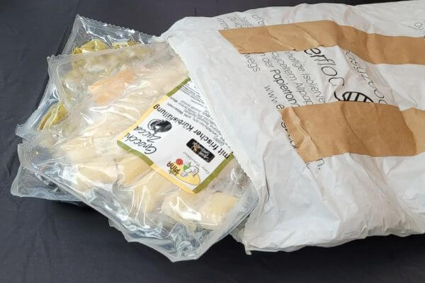 Kühlware verpacken wir zusammen mit gefrorenen Eispacks in praktischen und umweltfreundlichen Isolierbeuteln. So wird die Ware mehrere Tage sicher gekühlt. Nach dem Auspacken können Sie den Isolierbeutel einfach im Altpapier entsorgen.