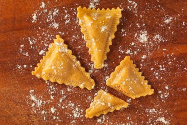 Unsere frischen Trigoni (oder auch Triangoli), sind dreieckige, gefüllte Teigtaschen, die durch ihre besondere Form und großzügige Füllung überzeugen. Ob mit feinem Taleggio-Käse, aromatischen Pilzen oder edlem Trüffel gefüllt – diese Pasta-Form ideal für geschmacksintensive Füllungen. Serviert mit einer leichten Salbeibutter oder einer einfachen Tomatensauce, unterstreichen sie den feinen Geschmack der Füllung.